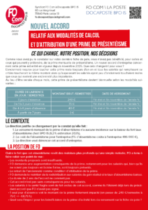 Comme vous avez pu le constater sur votre dernière fiche de paie, vous n’avez pas bénéficié, pour celles et ceux qui peuvent y prétendre, de la prime mensuelle de présentéisme. Un nouvel accord d’entreprise concernant cette prime est entré en vigueur depuis novembre 2025.